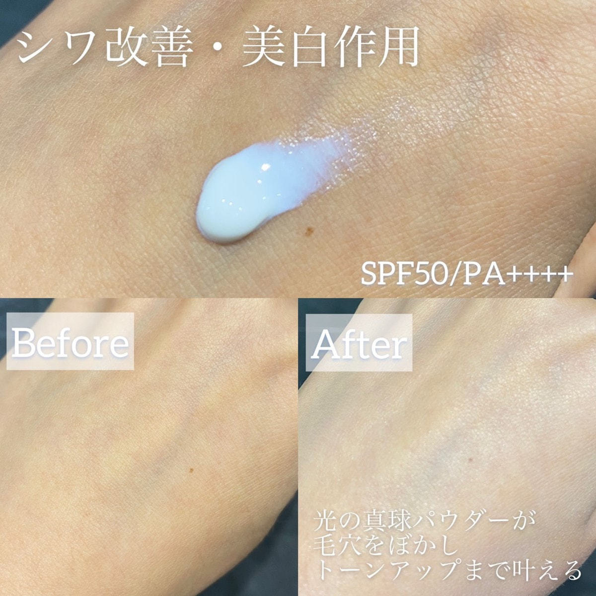 【有効成分】ナイアシンアミド【その他の成分】精製水、デカメチルシクロペンタシロキサン、低温焼成酸化亜鉛、ポリオキシエチレン・メチルポリシロキサン共重合体、1,3-ブチレングリコール、メチルポリシロキサン、ヘキサメチレンジイソシアネート/トリメチロールヘキシルラクトン架橋ポリマー、微粒子酸化チタン、ジ2-エチルヘキサン酸ネオペンチルグリコール、PEG-9 ポリジメチルシロキシエチル ジメチコン、1,2-ペンタンジオール、ソルビット液、ポリオキシエチレンメチルグルコシド、プルーン酵素分解物、サクラ葉抽出液、ノバラエキス、キウイエキス、ヒメフウロエキス、メマツヨイグサ抽出液、オウゴンエキス、エイジツエキス、ヨクイニンエキス、レモングラス抽出液、アマチャヅルエキス、ビルベリー葉エキス、水酸化アルミニウム、ポリヒドロキシステアリン酸、硫酸マグネシウム、イソステアリン酸、メチルハイドロジェンポリシロキサン、無水ケイ酸、ジメチルジステアリルアンモニウムヘクトライト、セスキイソステアリン酸ソルビタン、天然ビタミンE、フェノキシエタノール